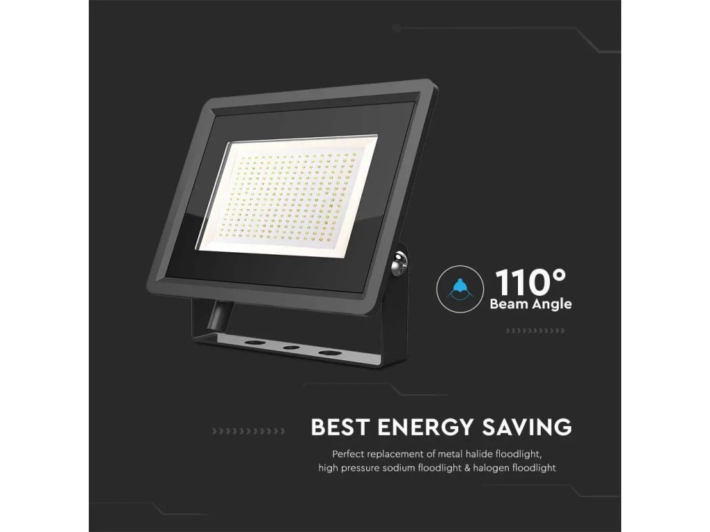 ✾ LED reflektor, 200W, 17600LM, 110°, IP65, černý/3-PACK!
