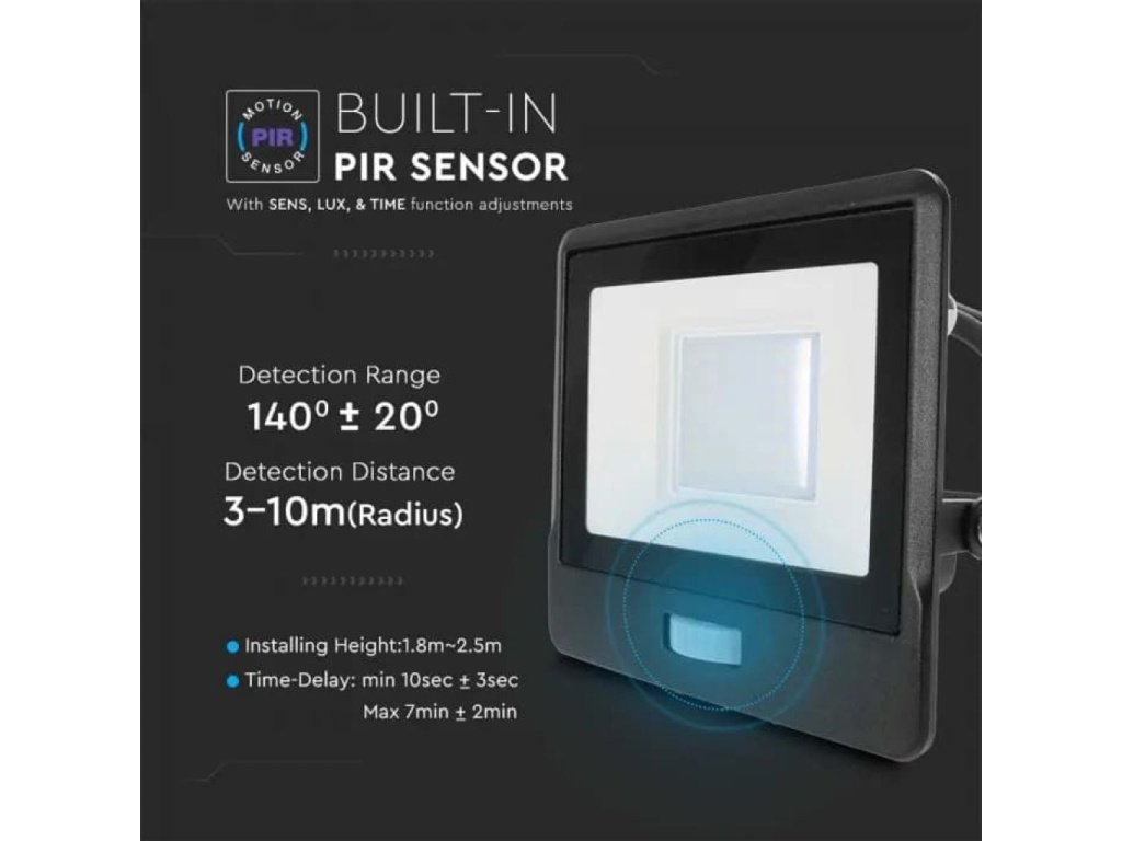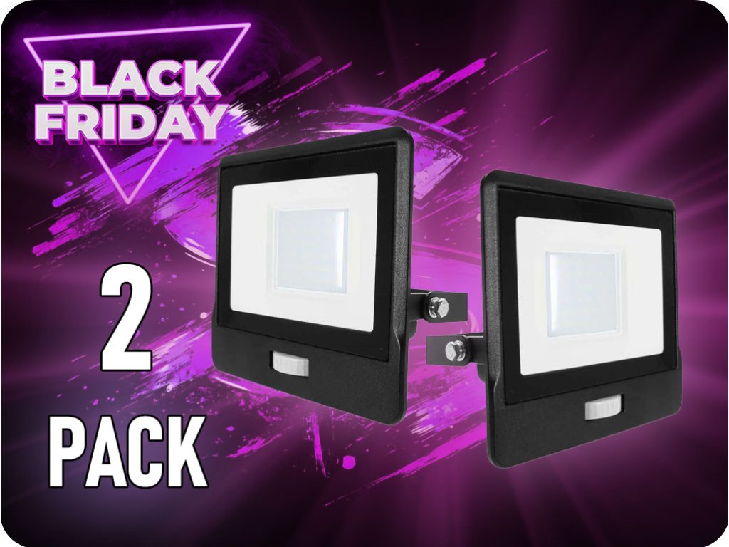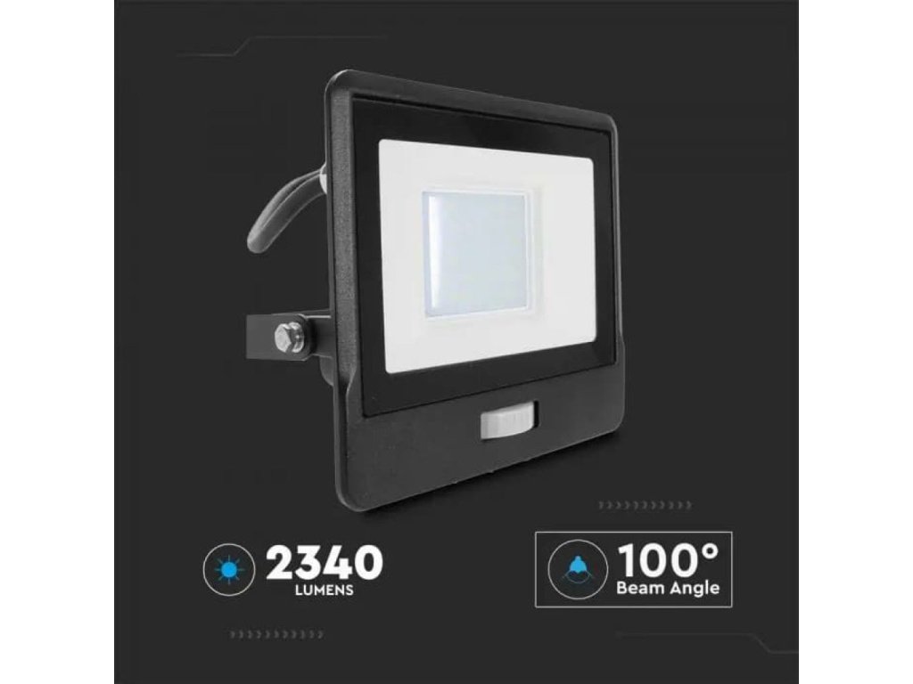 ✾ LED reflektor s PIR senzorem 30W, 2340lm, černý/2-PACK!