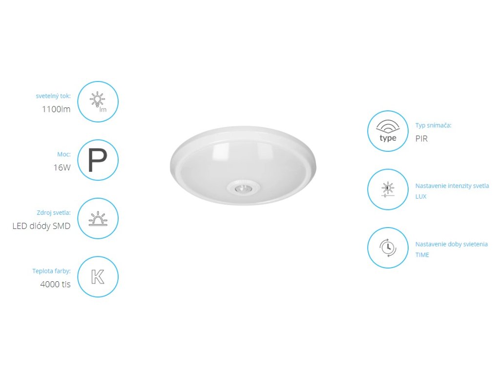 ✾ LED stropní svítidlo ZONDA se senzorem 16W, 1100lm, kulaté, 4000K [AD-PL-6076WLPMR4]
