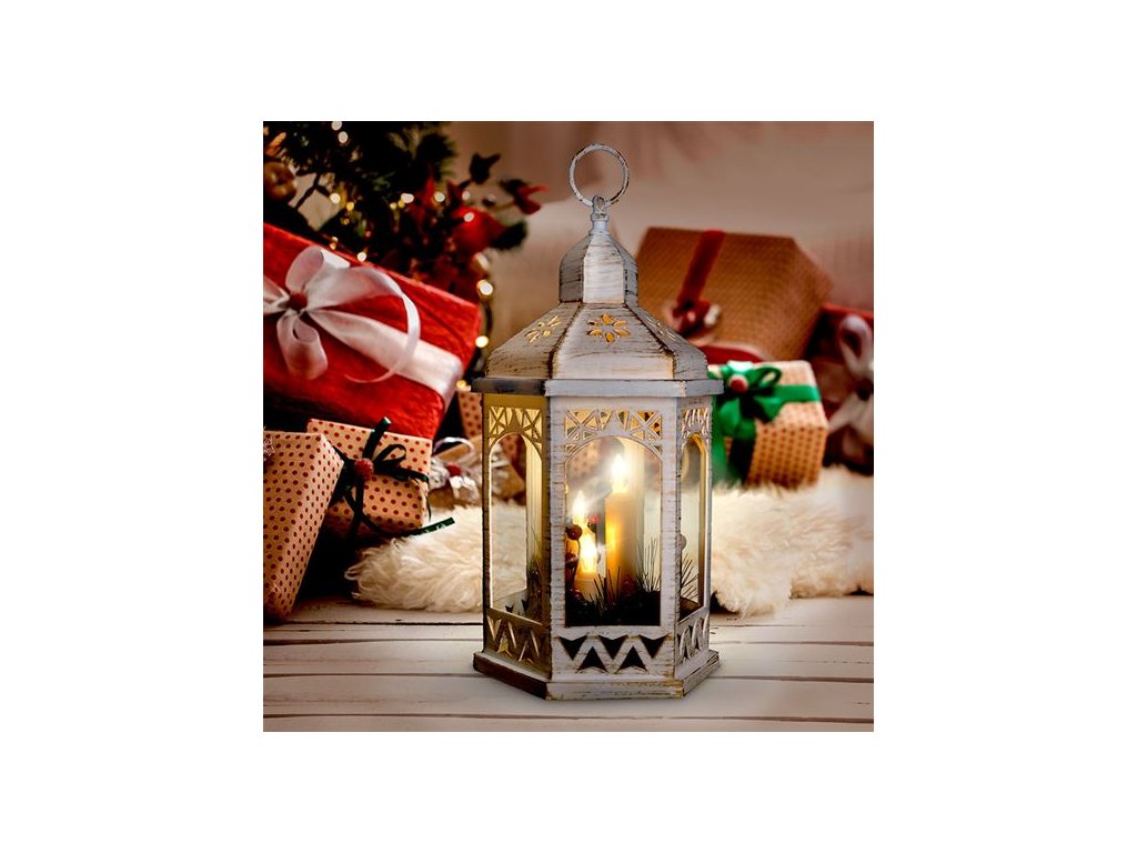 ⚡ Vánoční lucerna bílá, 33cm, 3xLED svíčka, 3xAAA/2-PACK! [1V266]