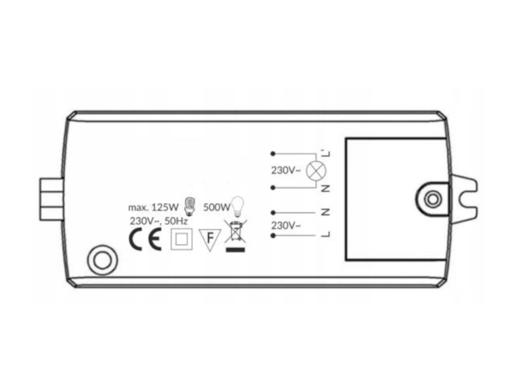 - maximální spínací výkon 500 W, což umožňuje připojení různých světelných zdrojů nebo LED diod s celkovým výkonem 125 W