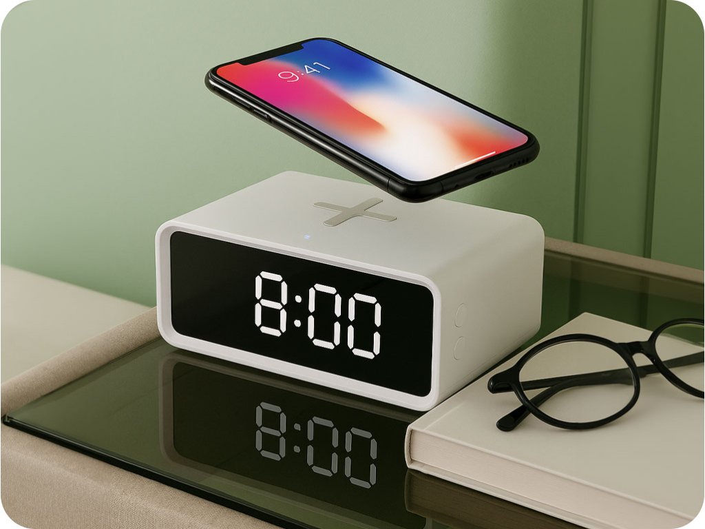Budík s Qi bezdrátovou nabíječkou [CA07W]