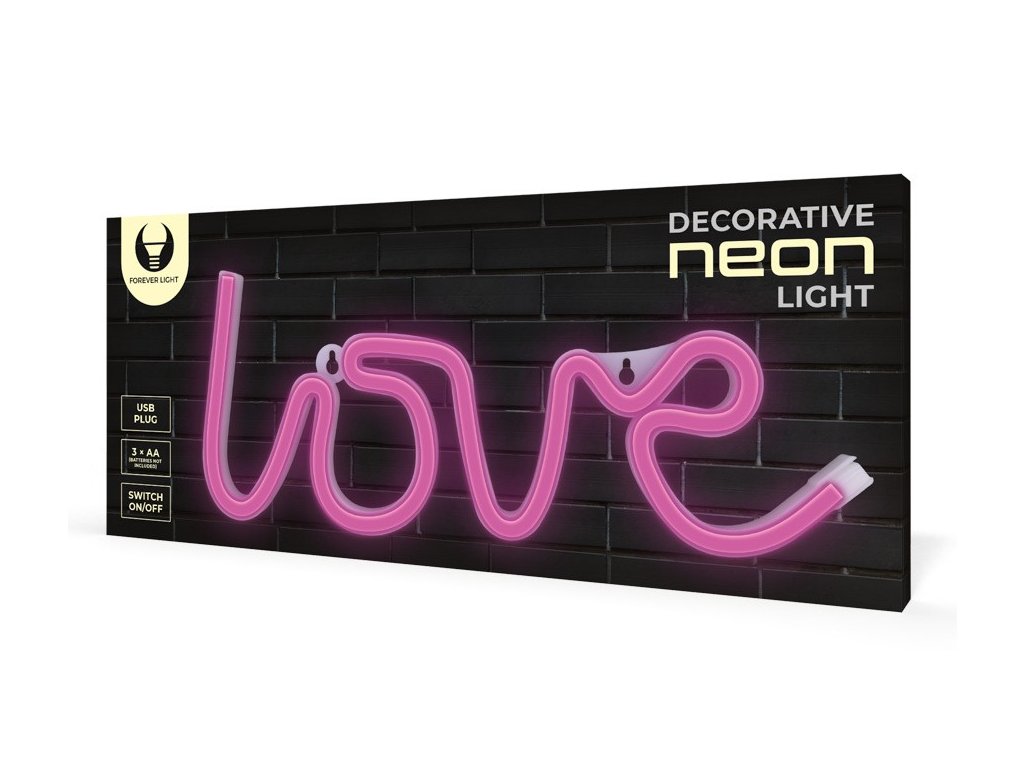 Forever Light Neon LED dekorace - LOVE, růžová, 3xAA/USB [RTV100208]