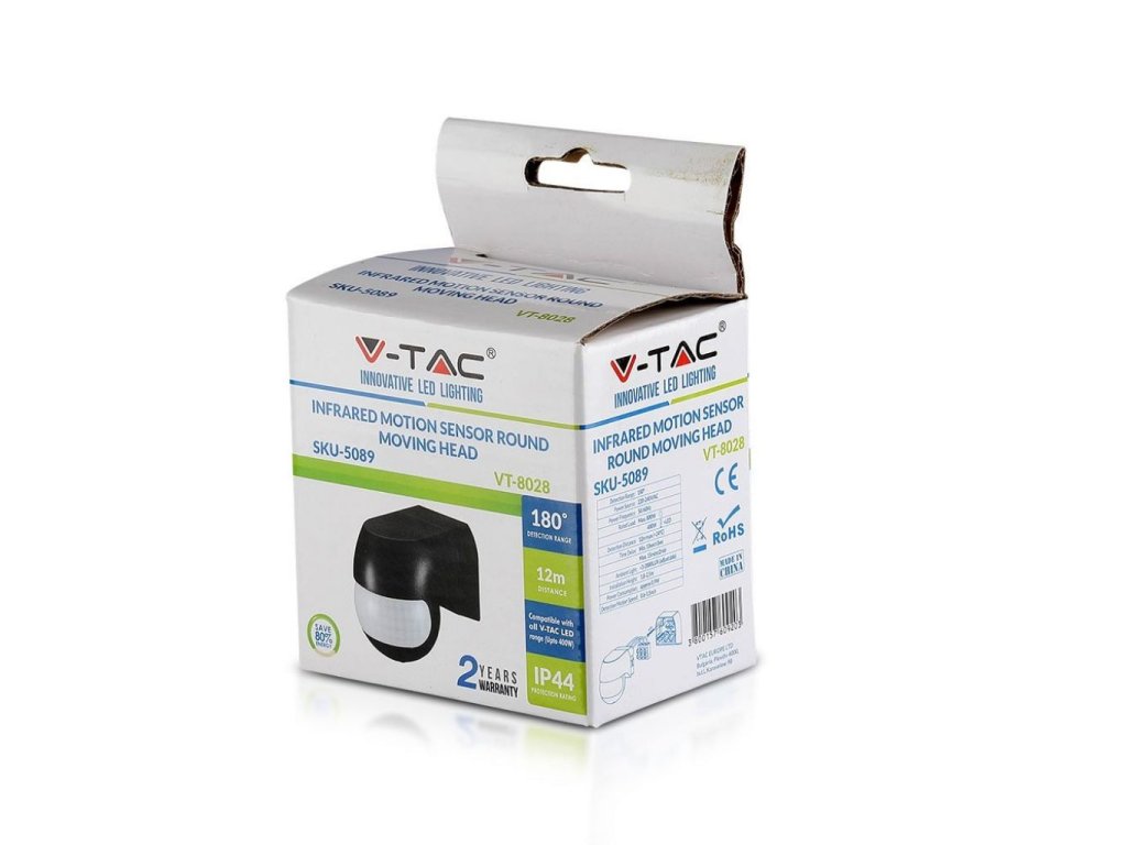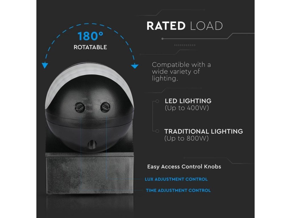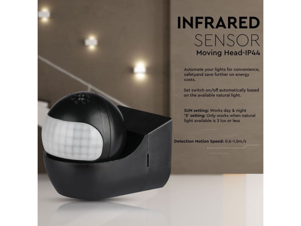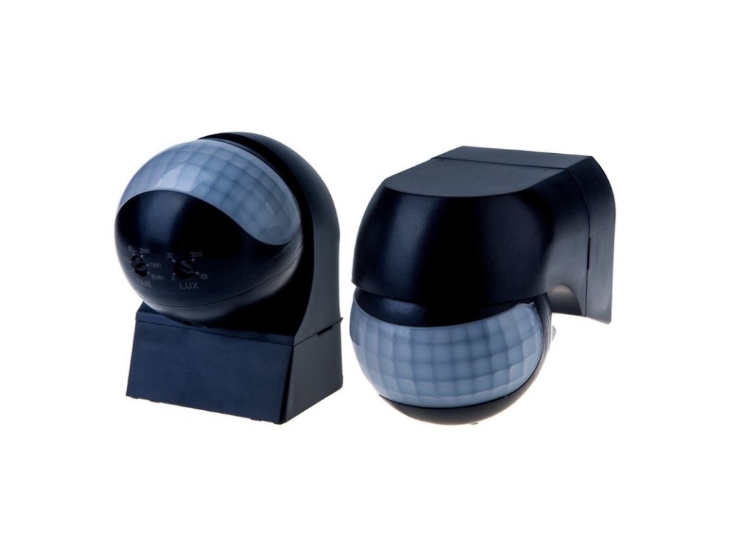 Infračervený pohybový senzor na zeď s pohyblivou hlavou, 180°, IP44, černý