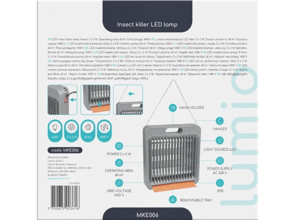 Lapač hmyzu 2x2W, 230V, 60m² [MKE006]