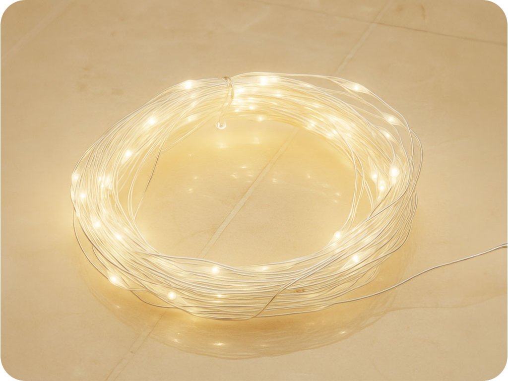 LED dekorační řetěz 2m, 20LED, 2xAA, teplá bílá, bez funkcí, stříbrná [X0120111]