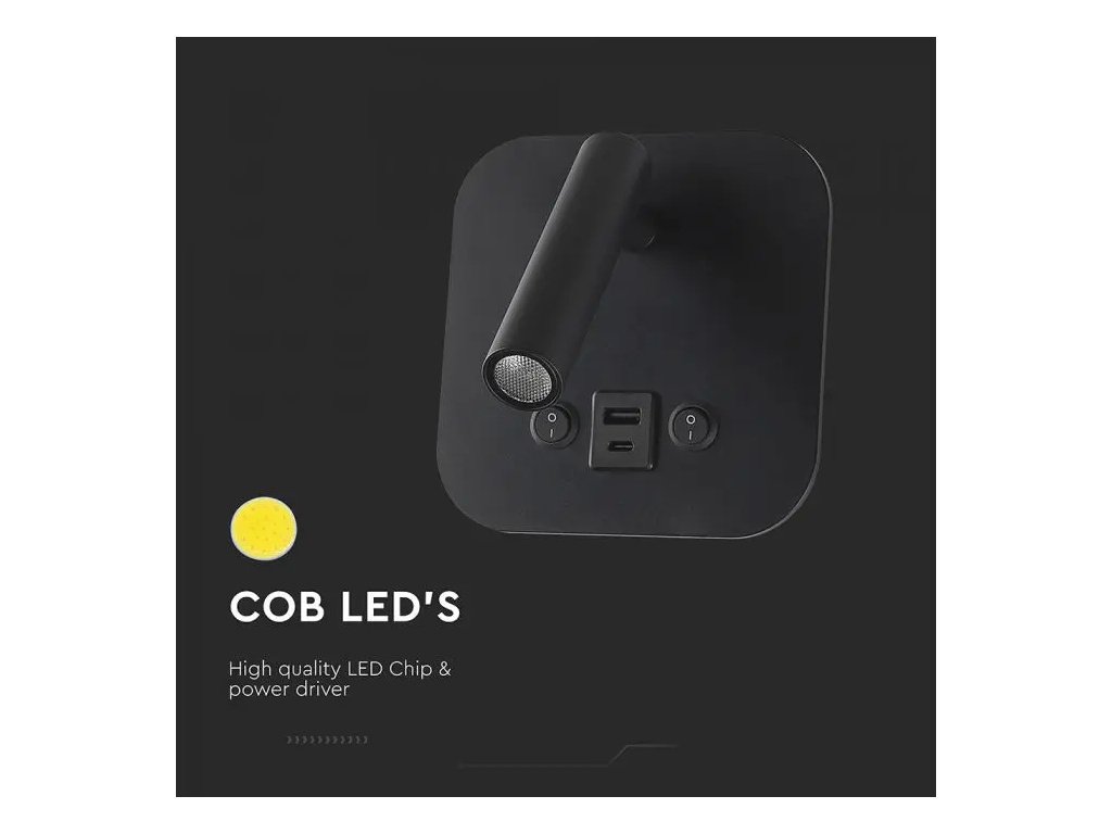 LED lampa k posteli 8W, 830lm, CREE CHIP, černá/2-PACK!