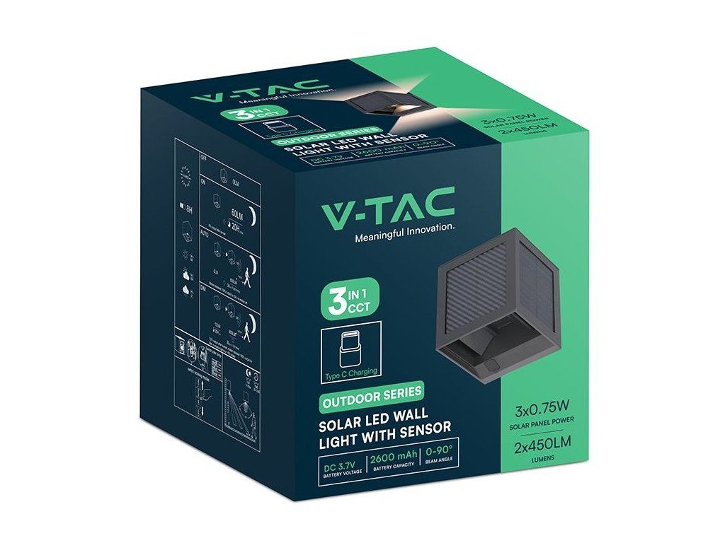 LED nástěnné solární svítidlo s PIR senzorem 2,25W, 900lm, CCT, 1+1 zdarma!