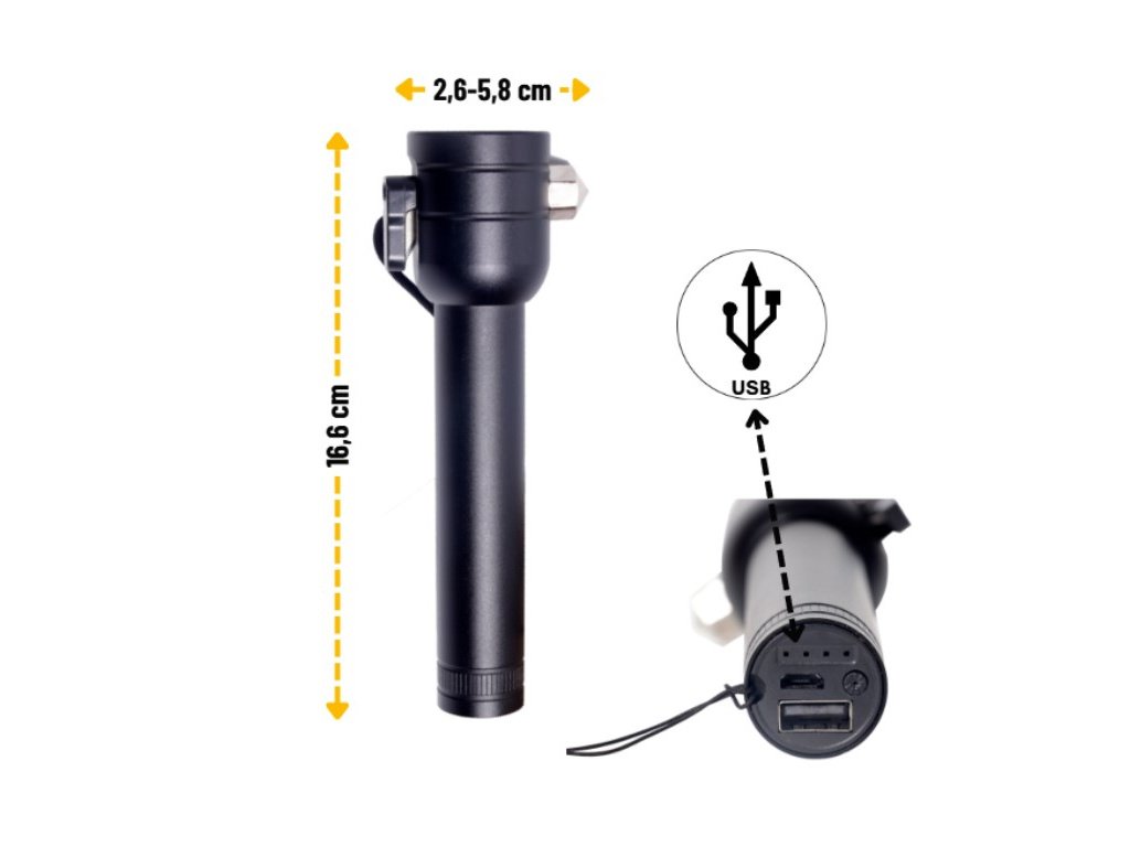 LED nouzová baterka s kladívkem 3W, 200lm, 1x1200mAh, 5 módů [LA0213]
