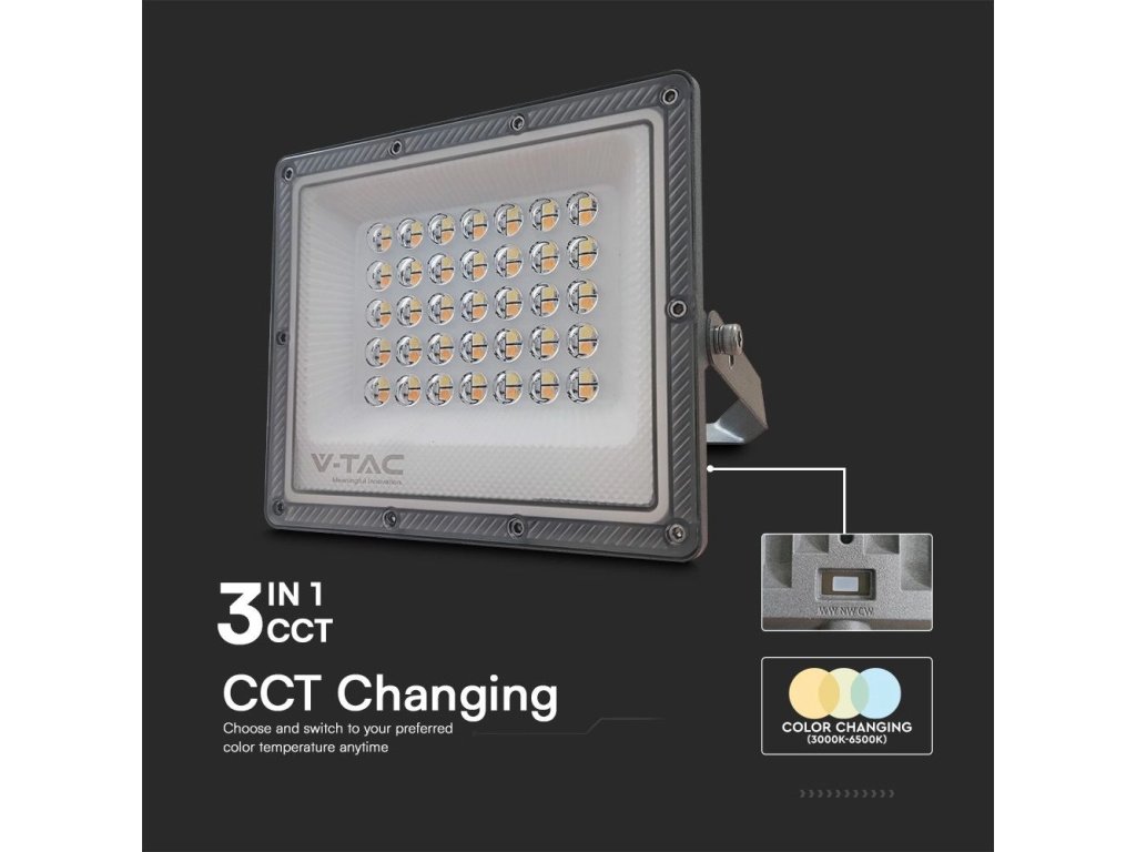 LED REFLEKTOR 30W, 2350LM, IP65, CCT, ZMĚNA BARVY 3000K/4000K/6500K, ŠEDÝ/2-PACK!