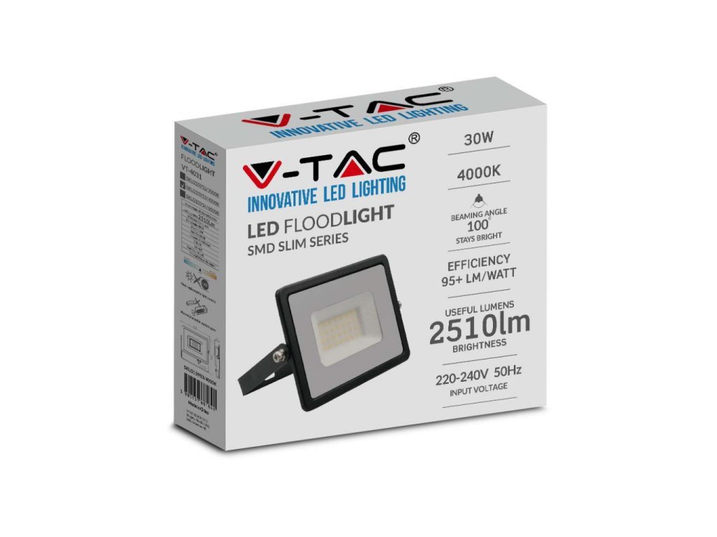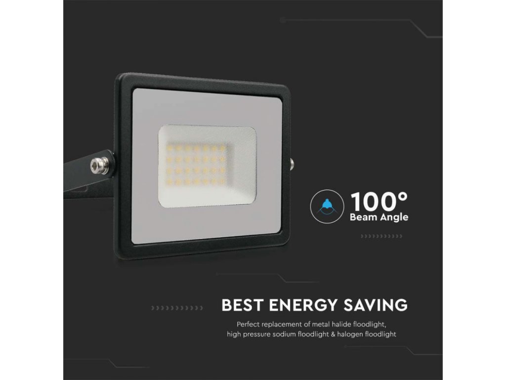 LED reflektor 30W, 2510lm, černý