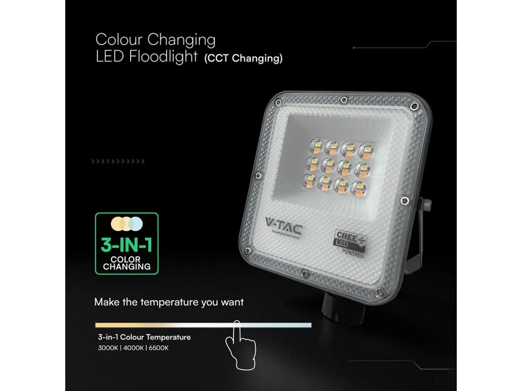 LED reflektor 50W, 4000lm, CCT změna barvy, CREE CHIP, černý/3-PACK!