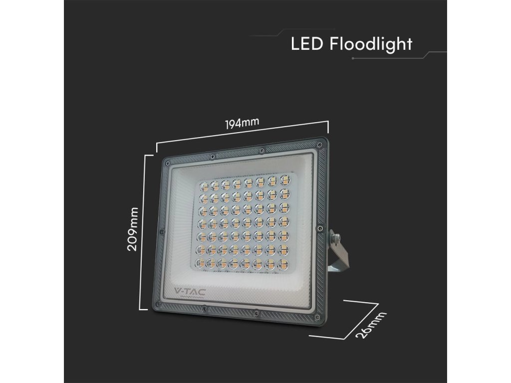 LED REFLEKTOR 50W, 5000lm, IP65, CCT, ZMĚNA BARVY 3000K/4000K/6500K, ŠEDÝ/2-PACK!