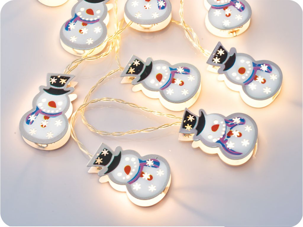 LED řetěz Sněhuláci, kovová, 1.35m, 10LED, 3xAA, teplá bílá, bez funkcí, transparentní kabel [XMSNMAN102A]