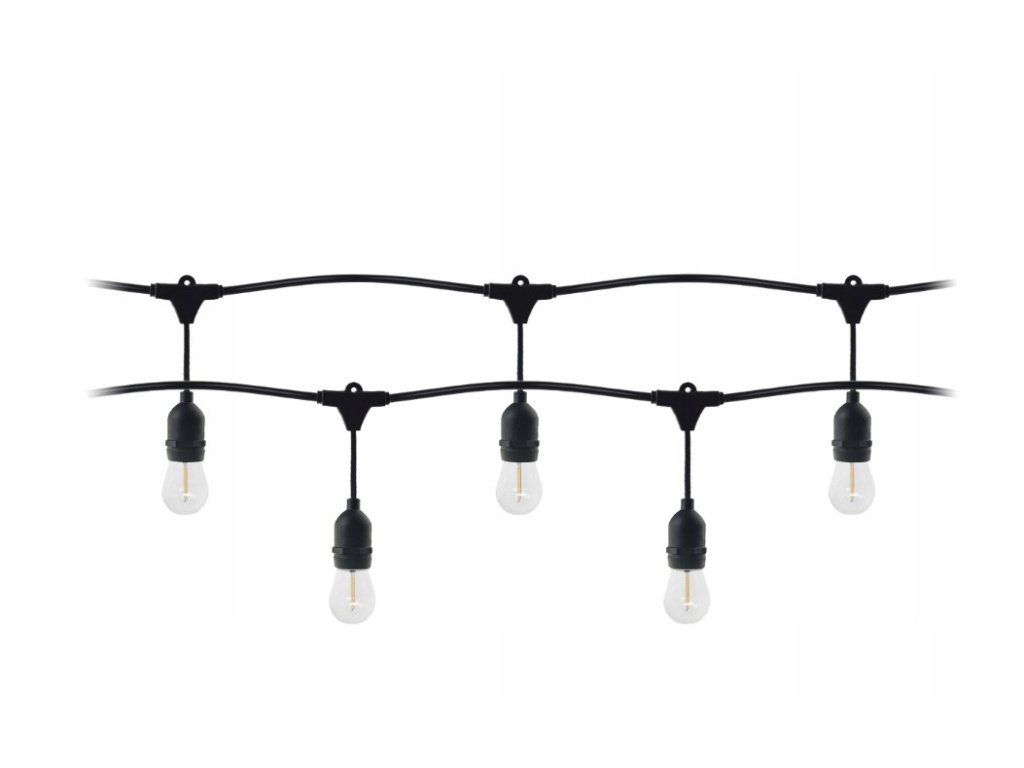 LED řetězové svítidlo 10m+10x žárovka E27 1W, 80ml, černá [LG-3/10M/E27/3]