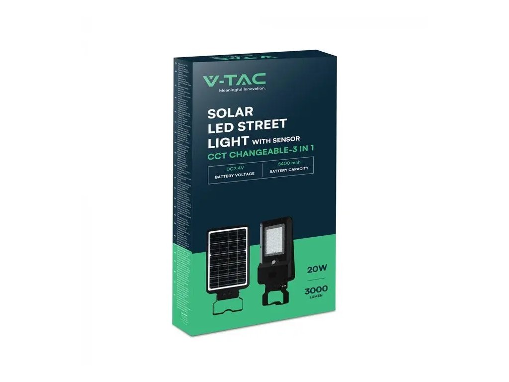 LED solární pouliční svítidlo 20W, 3000lm, CCT/2-PACK!