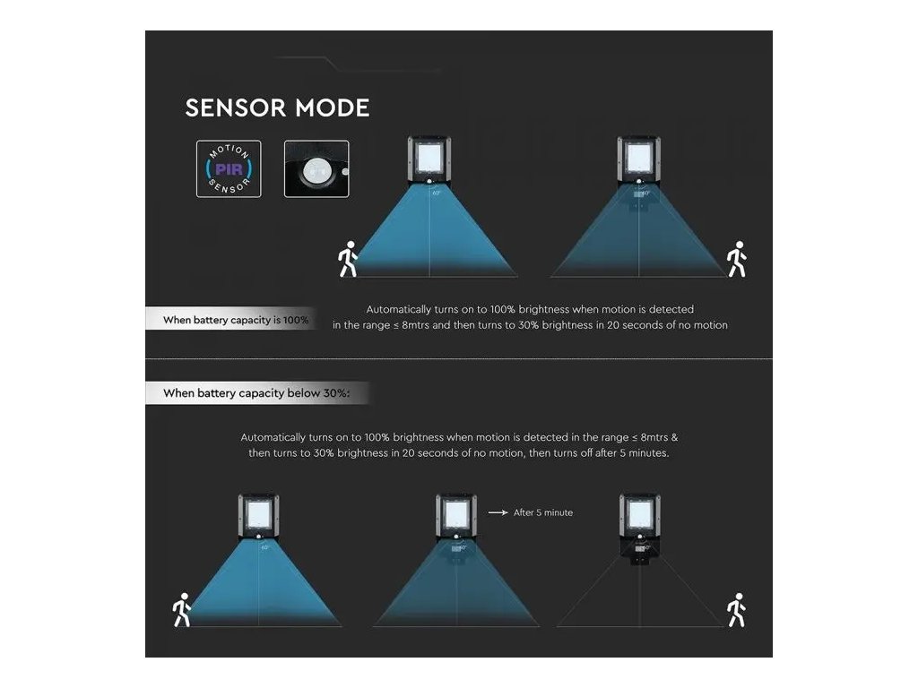 - Automatické zapnutí a vypnutí světla díky PIR senzoru pohybu