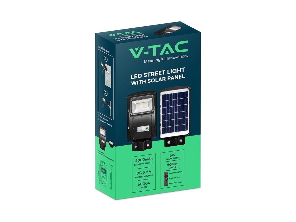 LED solární pouliční svítidlo 6W, 800lm, 6000K