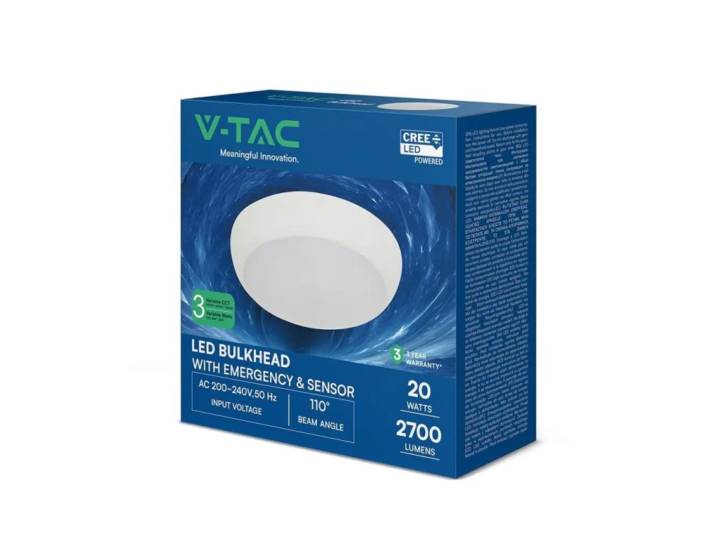LED svítilna se senzorem a nouzovým modulem 8W/16W/20W, 2700lm, CCT