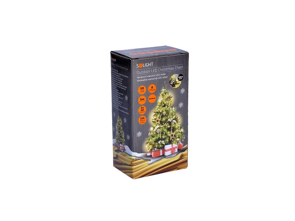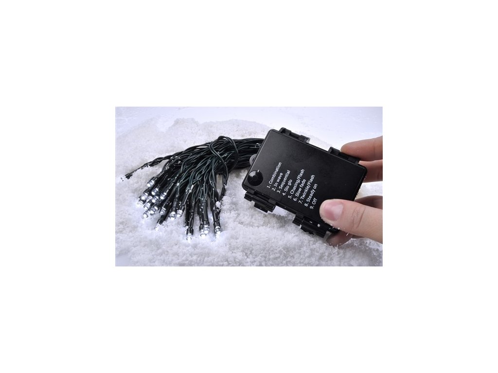 LED venkovní vánoční řetěz, 50LED, 5m, 3m přívod, 8 funkcí, IP44, 3x AA, teplá bílá, 1+1 zdarma! [1V53-WW]