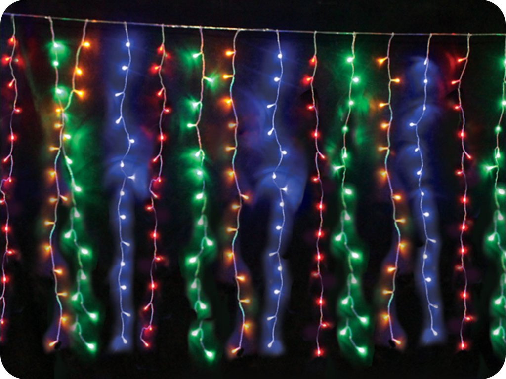 LED záclona 2m, 360LED, 20x větev, 2m délka větve, 8 funkcí, adaptér, transparentní kabel, IP44, RGB [X08360322]