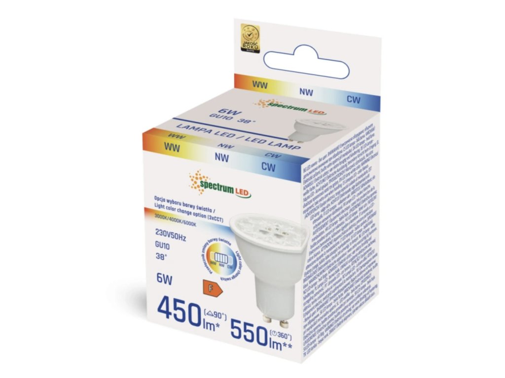 LED ŽÁROVKA GU10, 6W, 450LM, 38°, CCT 3000/4000/6000K [WJ+14703]
