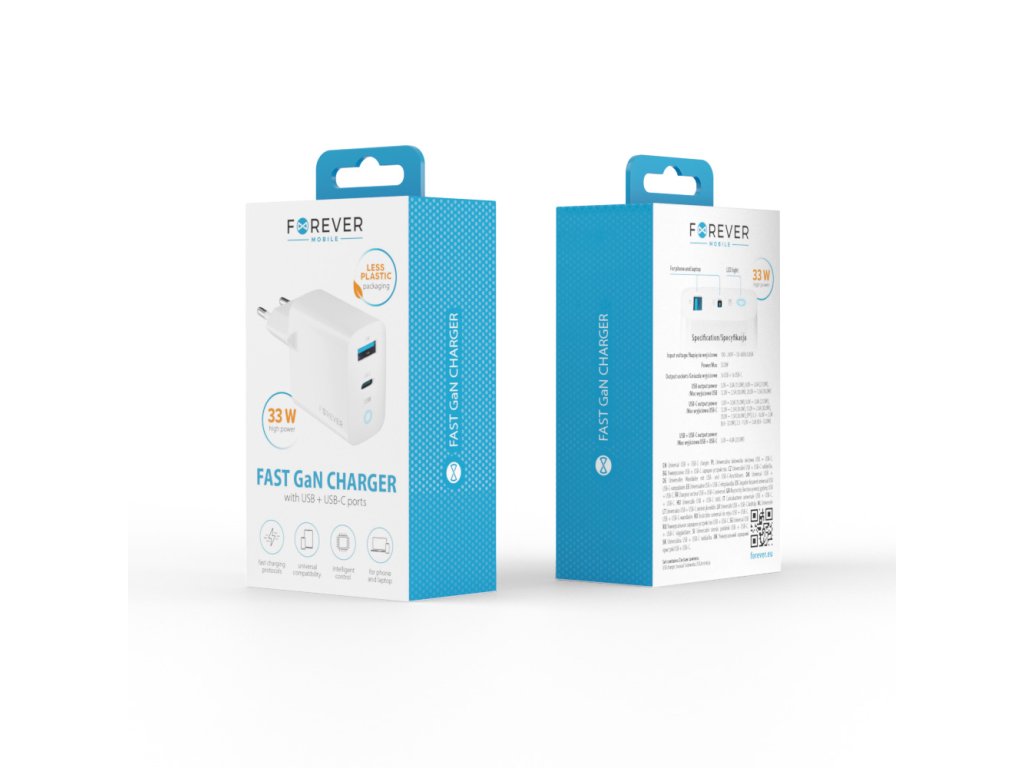 Nabíjecí adaptér GaN PD QC charger 1x USB-C, 1x USB, 33W, bílý [GSM171395]
