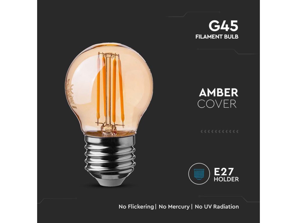 Retro LED žárovka, E27, 4W, 350lm, G45, jantar. sklo, 2200K