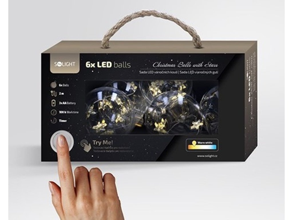 Sada LED vánočních koulí s hvězdami, 6ks, 30LED, časovač, tester, 1+1 zdarma! [1V228]