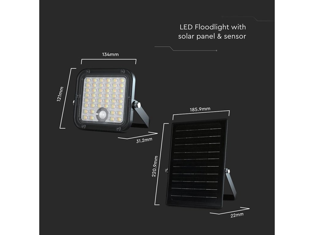 SOLÁRNÍ LED REFLEKTOR S DÁLKOVÝM OVLÁDÁNÍM A PIR SENSOREM 10W, 1500LM/2-PACK!
