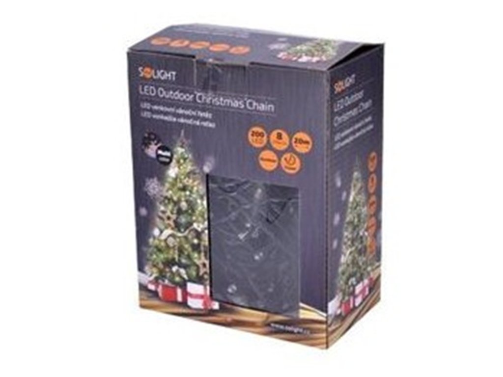 Solight LED venkovní vánoční řetěz, 200 LED, 20m, přívod 3m, 8 funkcí, časovač, IP44, vícebarevný