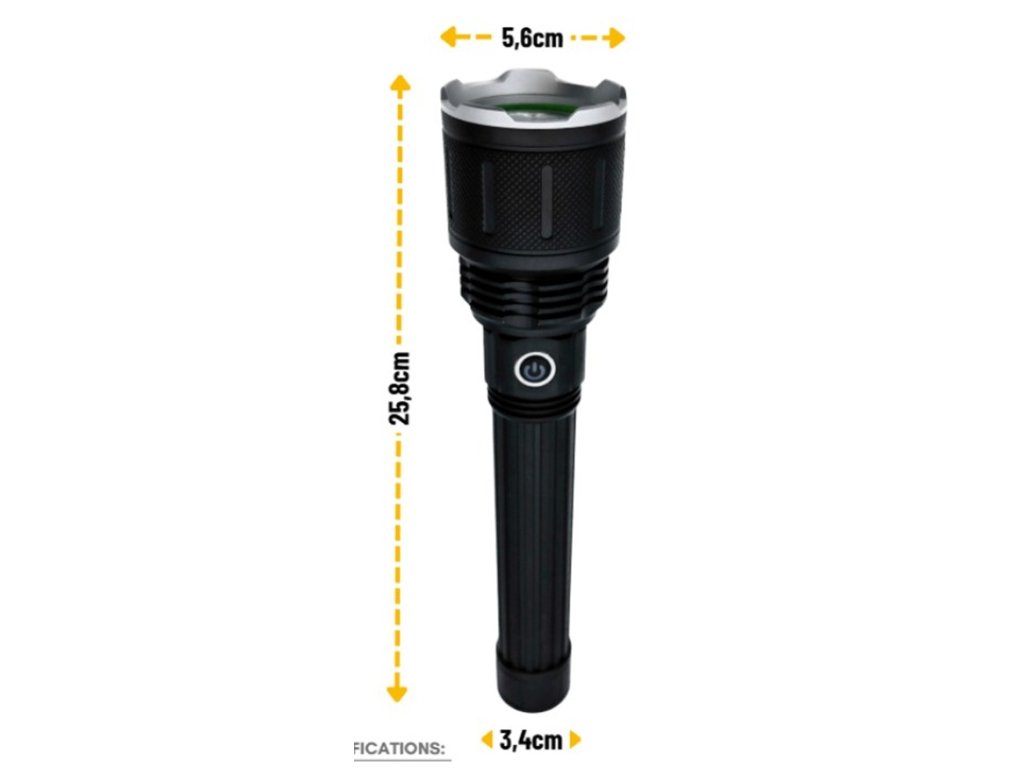 Taktická LED baterka 20W, 1000lm, nabíjení přes USB, 3 módy, 1+1 zdarma! [LA0215]